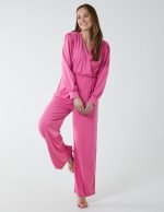 Elasticated Waist Crossover Long Sleeve Jumpsuit