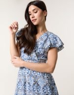 Taking you from morning meetings to out-of-office drinks in style this summer! Team this Aztec frill sleeve mini dress with nude pumps for the perfect office wear outfit.