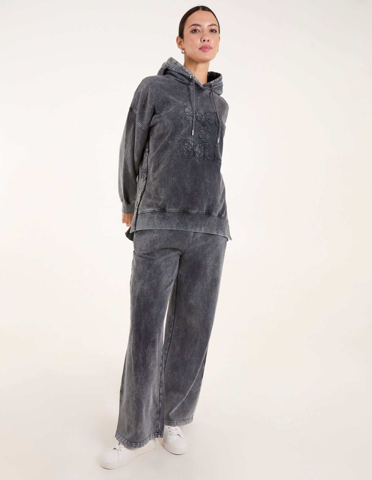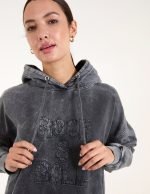 Rock & roll this season, team this edgy destressed-looking hoodie with flared jeans and chunky trainers for the perfect casual look this season.