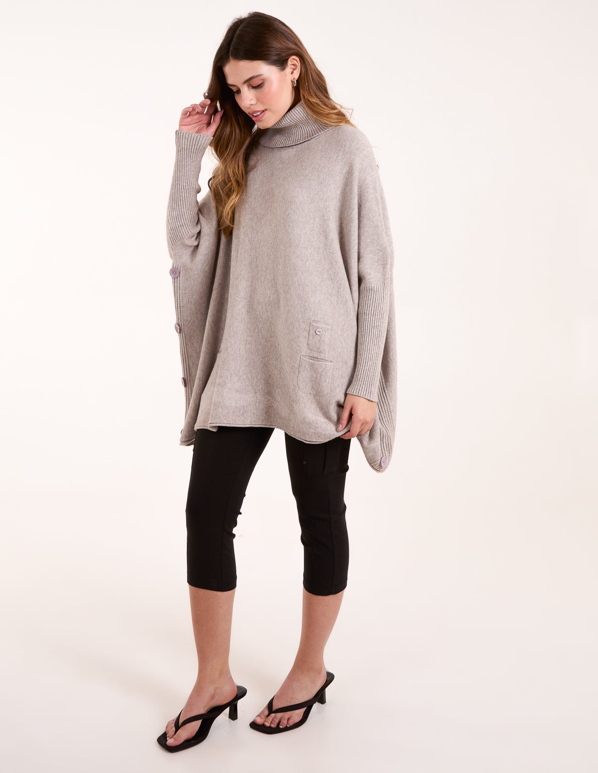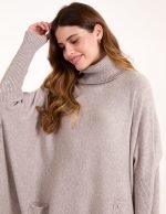 A great everyday jumper for all occasions. This knitted number is warm, soft and breathable, and features detailed patch pockets and button on the front and a chunky roll neck.