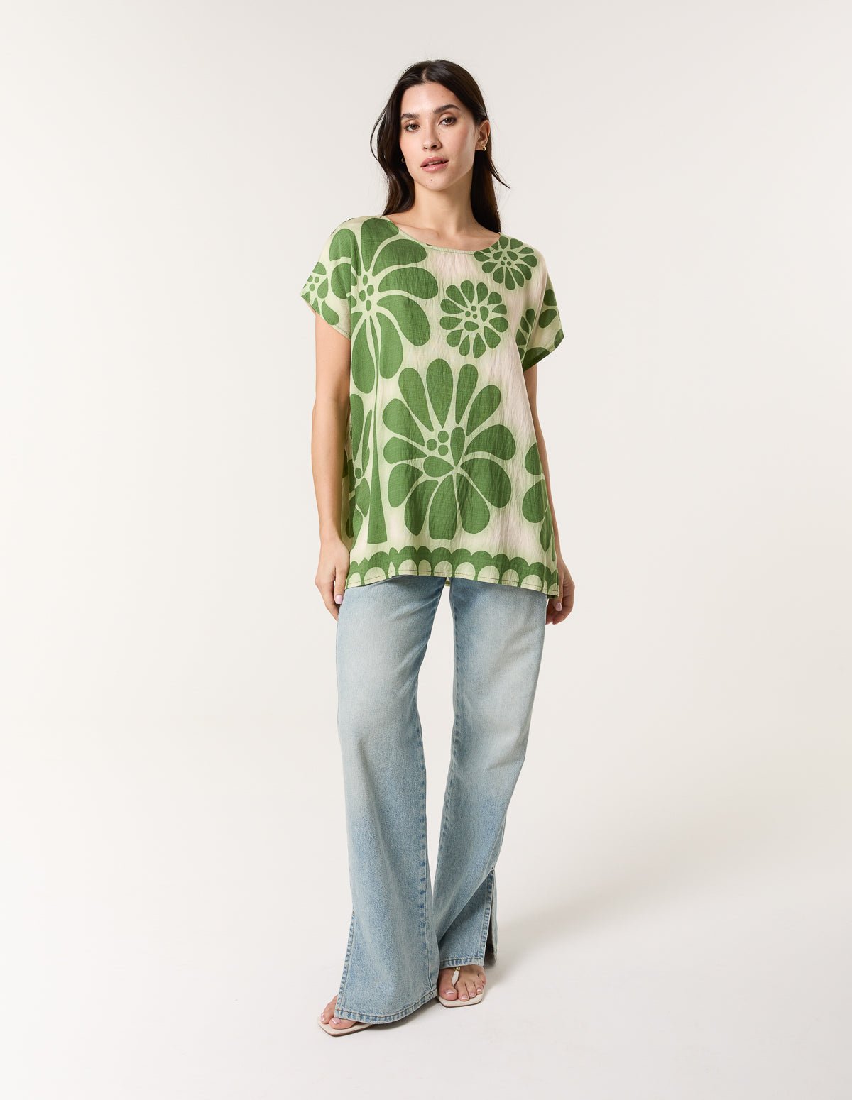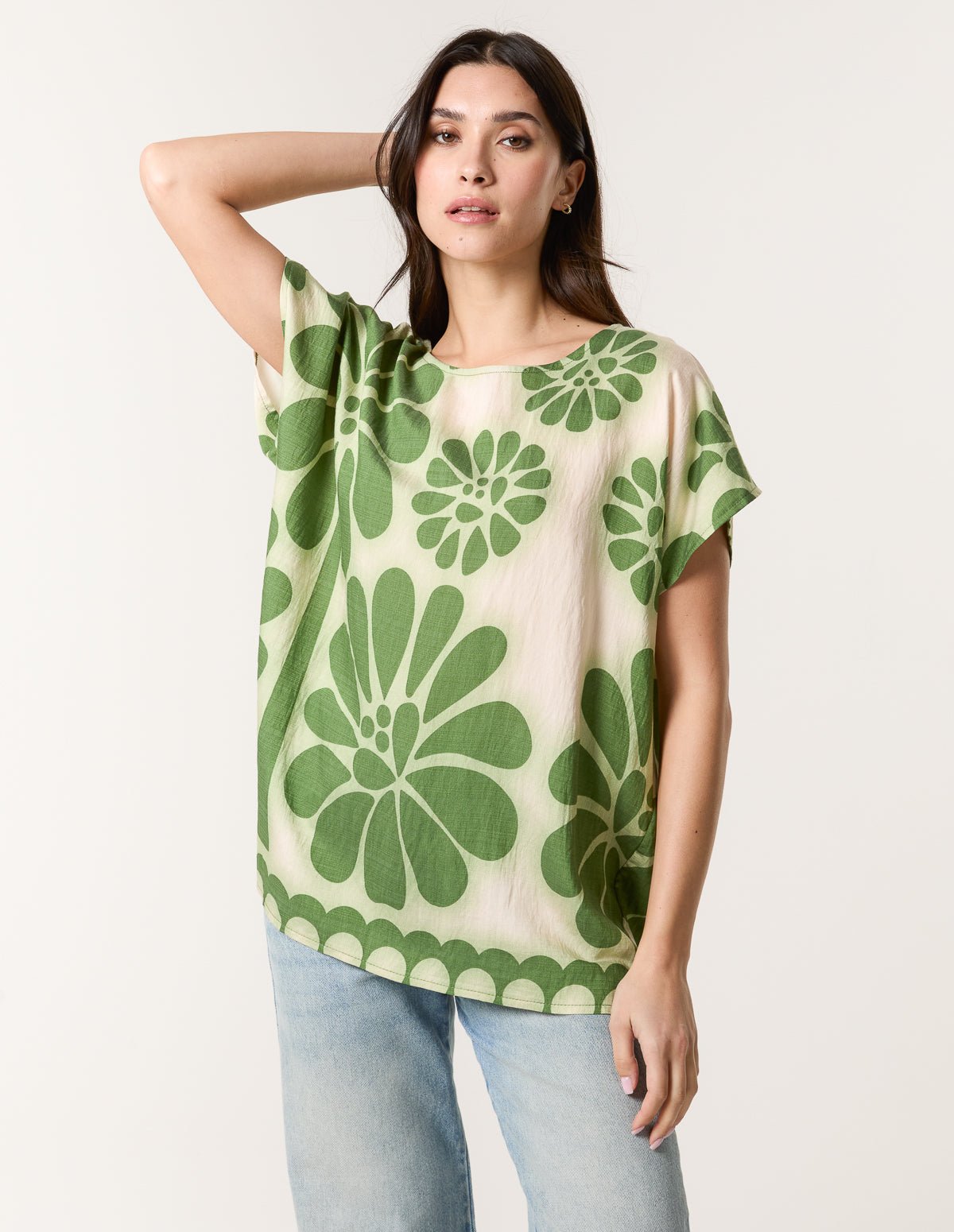 Here’s the perfect everyday T-Shirt for you this season! A comfy linen T-Shirt with a fun print and pop of colour! Here at Blue Vanilla, we’re here to cover all your needs.