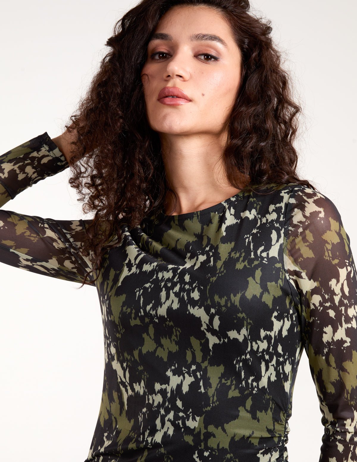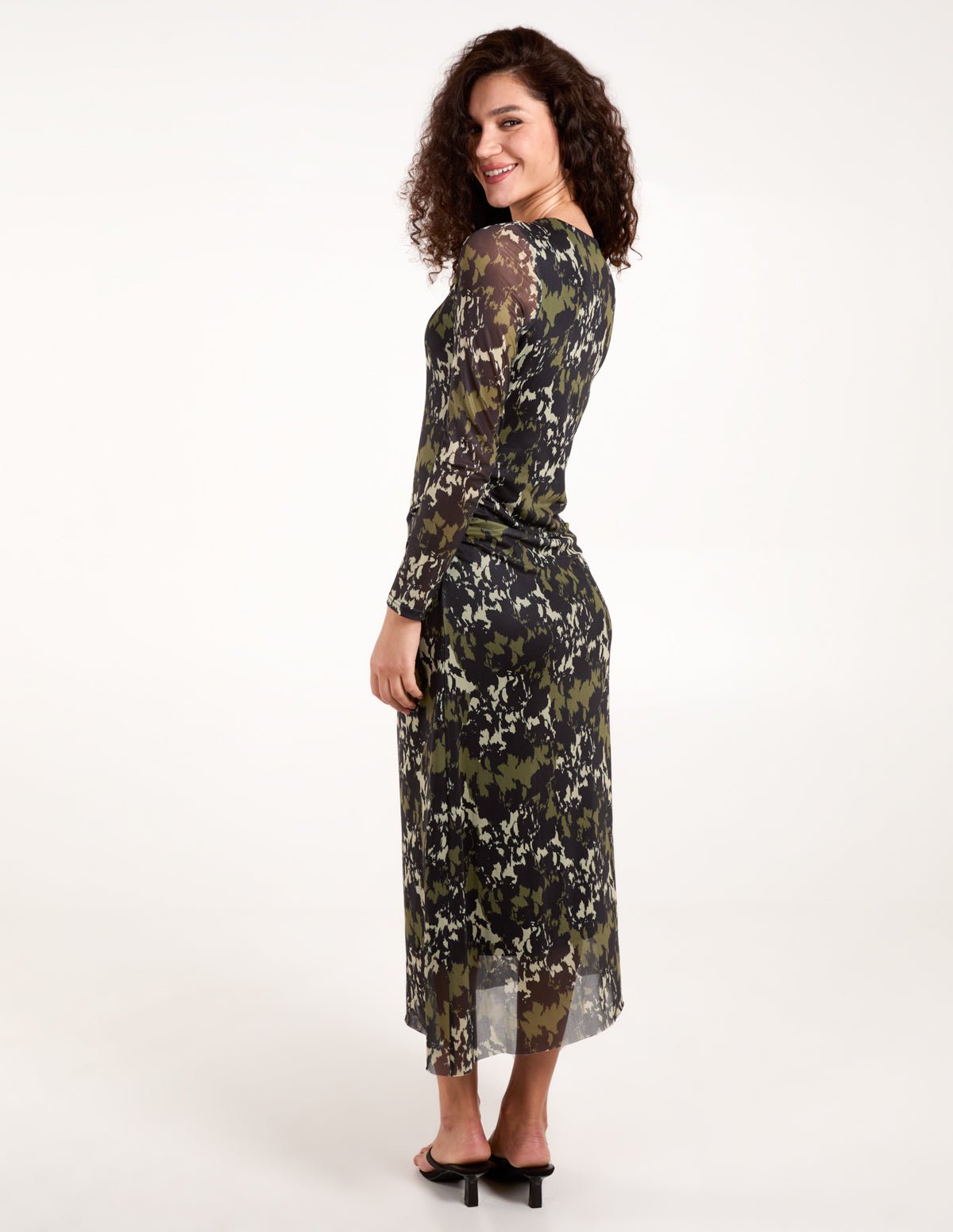 Ruched Mesh Midi Dress