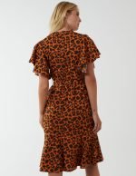 Make a statement this season with this leopard print dress! With a wrap front, tie waist and frill sleeves that add a refined element to the dress, complete your look by matching with wedge shoes.Â