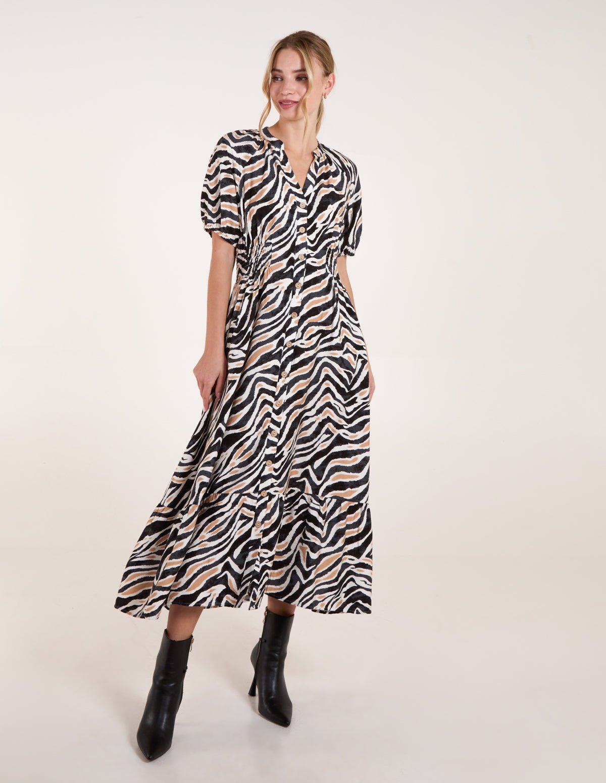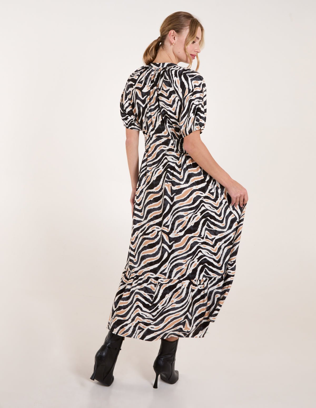 Swap your leopard print dress for this zebra printed midi dress. Team this light breezy option with gladiator sandals.
