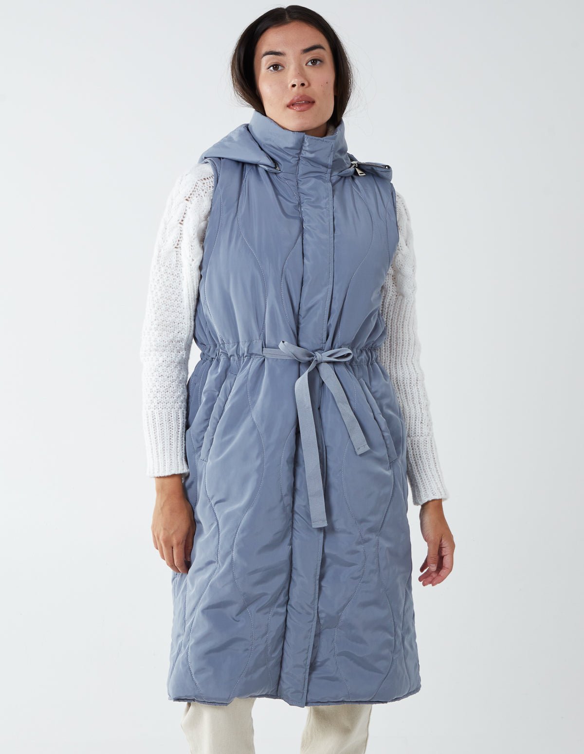 Whether you are taking a walk in the park, or going to work, the Onion Quilted Gilet won’t restrict you from any activity. Designed with a waist belt to hug your body and perfectly suit you, and a removable hoodie, match this gilet with a sweater and ankle boots.