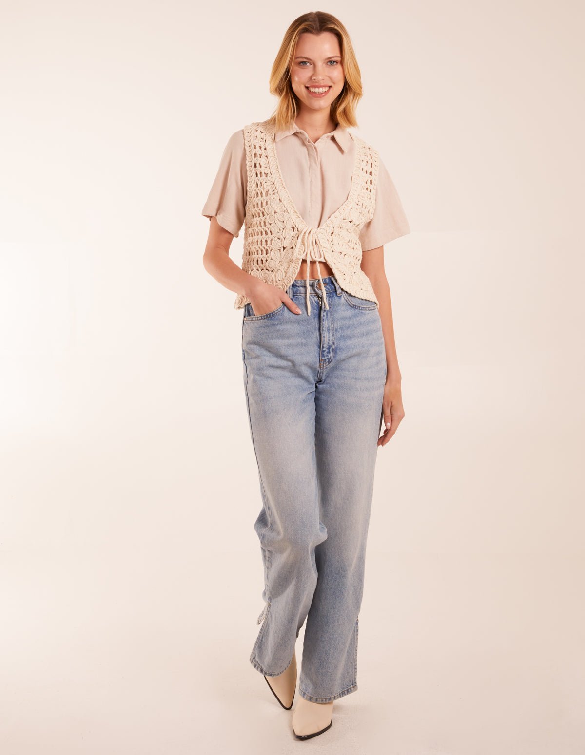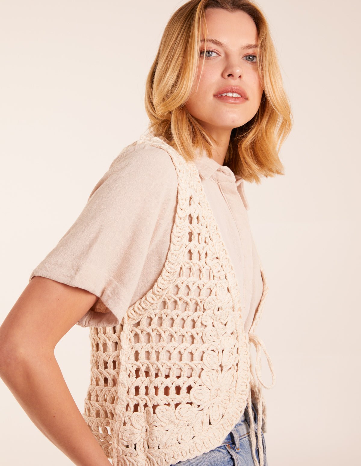 A bohemian take on this crochet waistcoat, style this piece over any blouse or bikini top to infuse bohemian textures into your look this Summer.