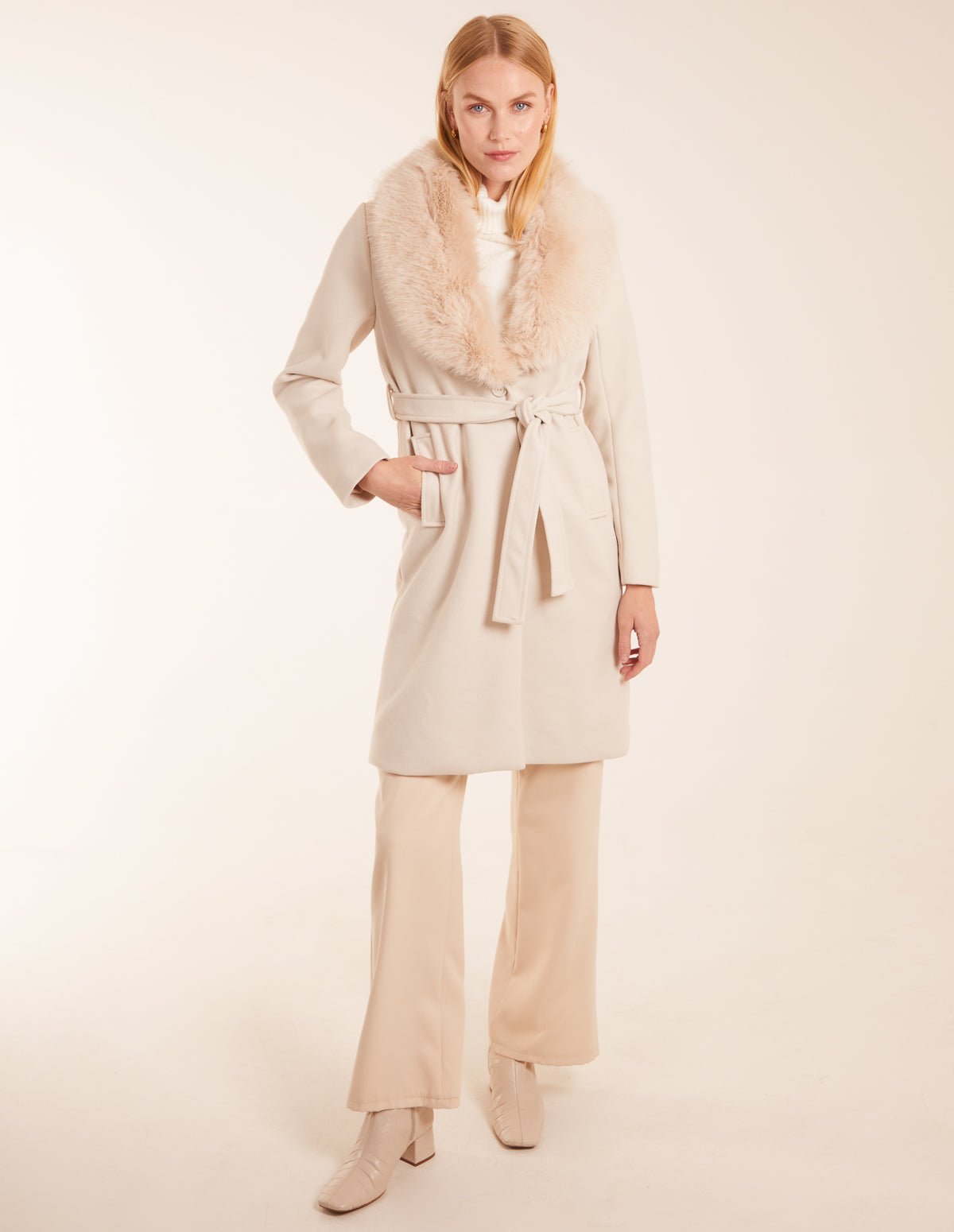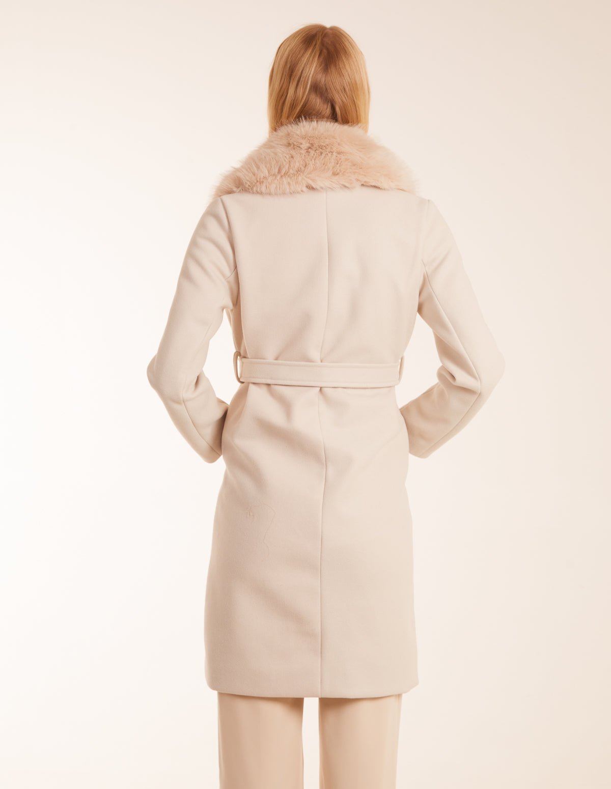 Faux Fur Collared Belted Coat