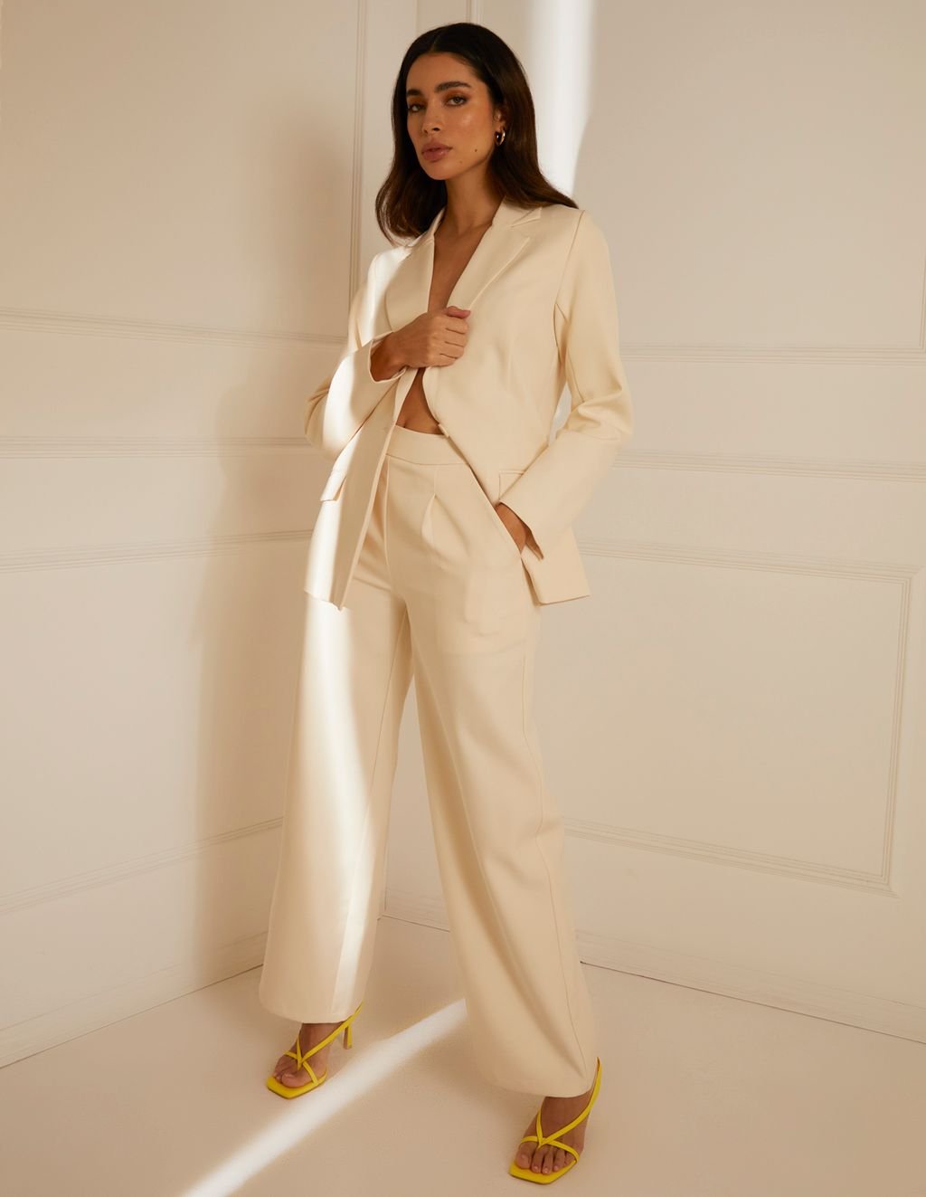 Looking for sophisticated and classy vibes with minimal effort? Step into this season’s soft tailoring trend. The perfect item worthy of any social event! Team with the blazer to match and pattern court heels.
