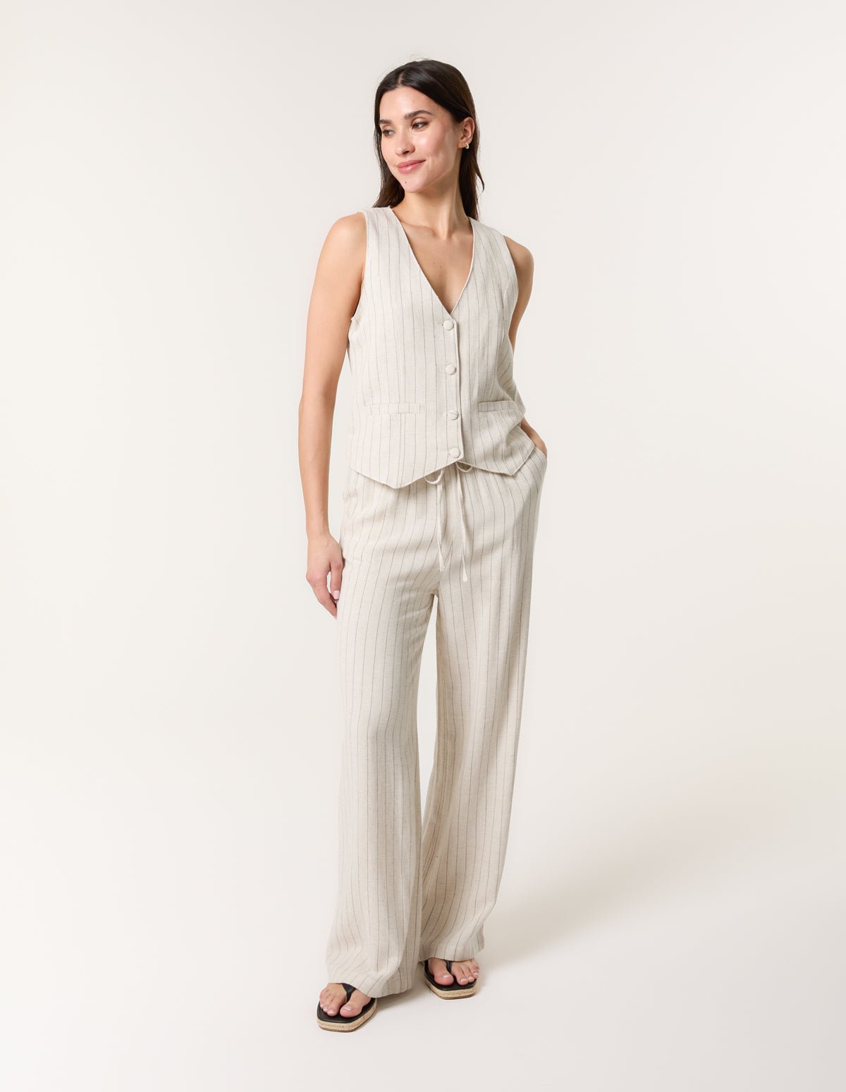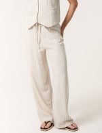 Stripe Wide Leg Linen Trousers