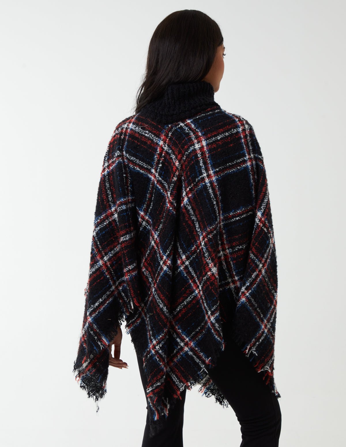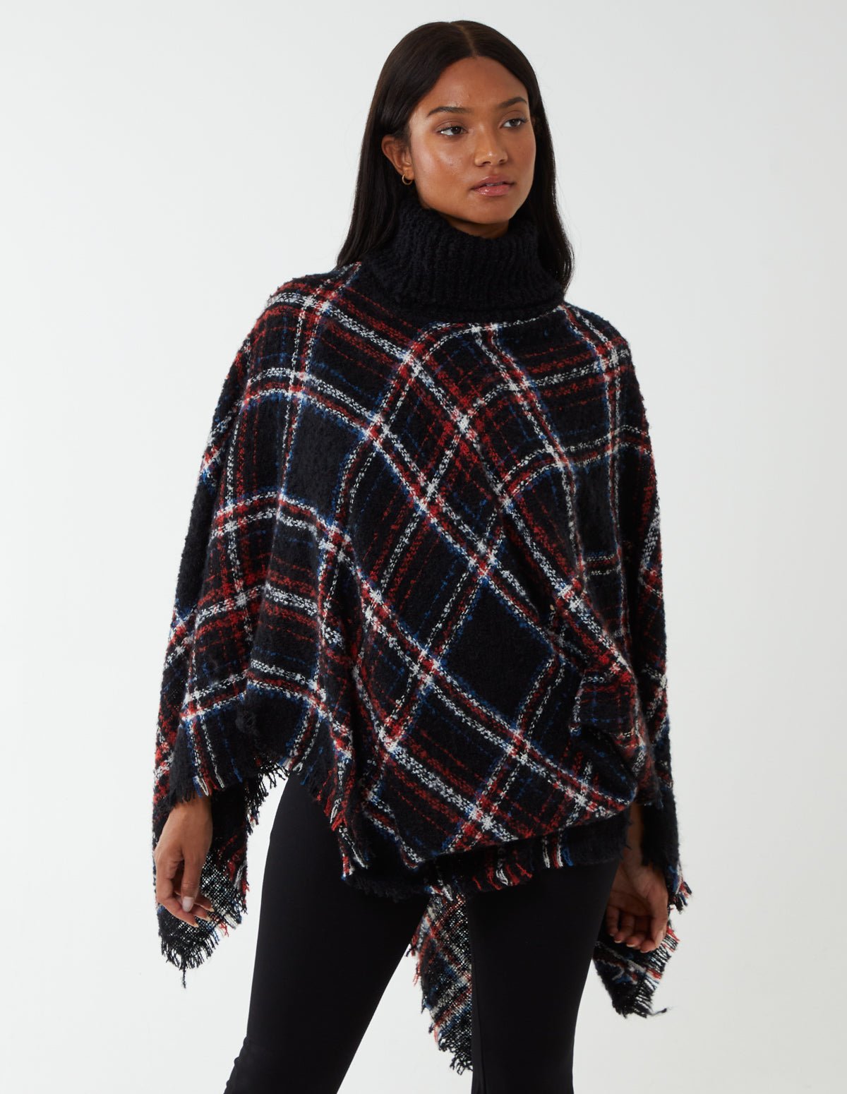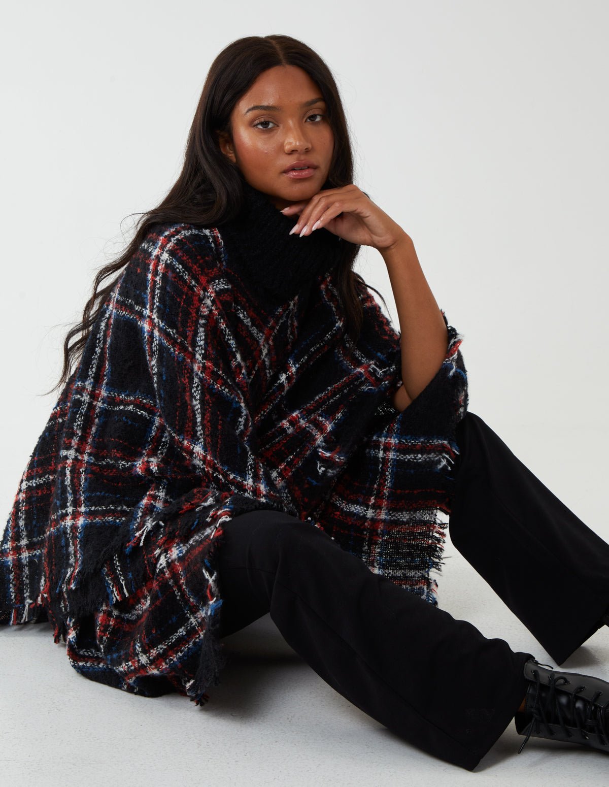 Stay warm and chic wearing this tartan knitted poncho. It’s a versatile and cosy piece that you’ll be reaching for time and time again.