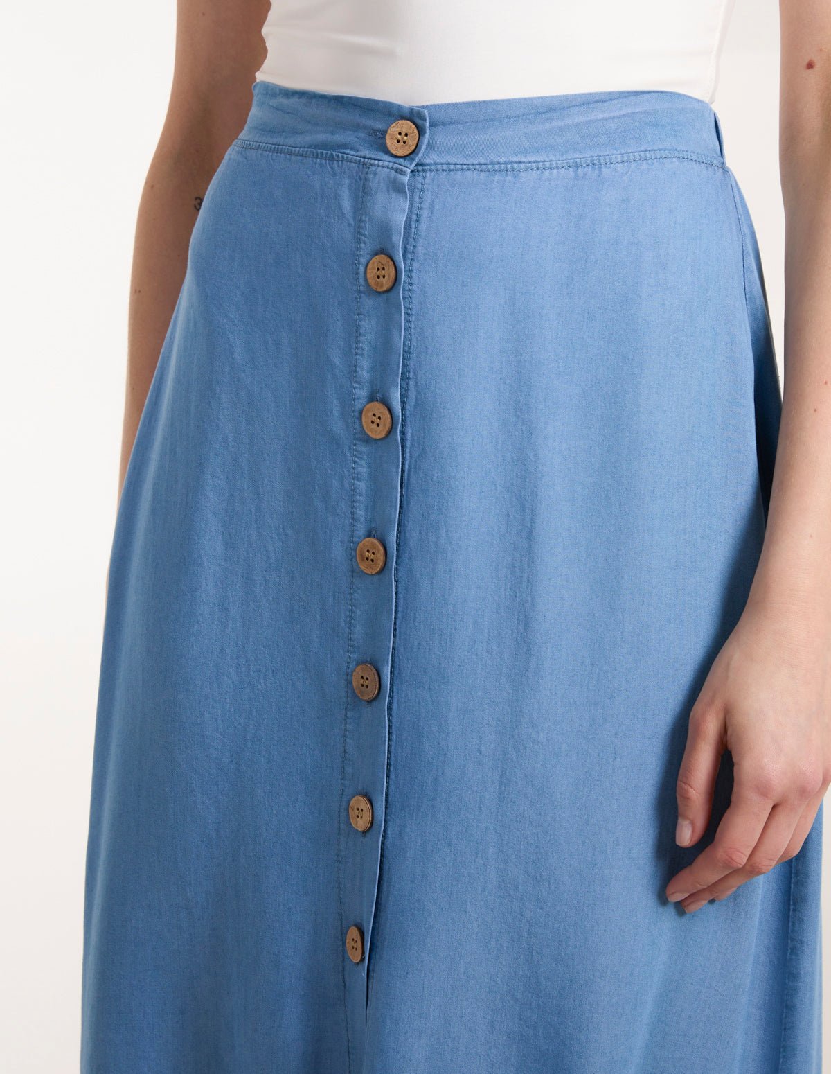 Tencel Button Front Midi Skirt