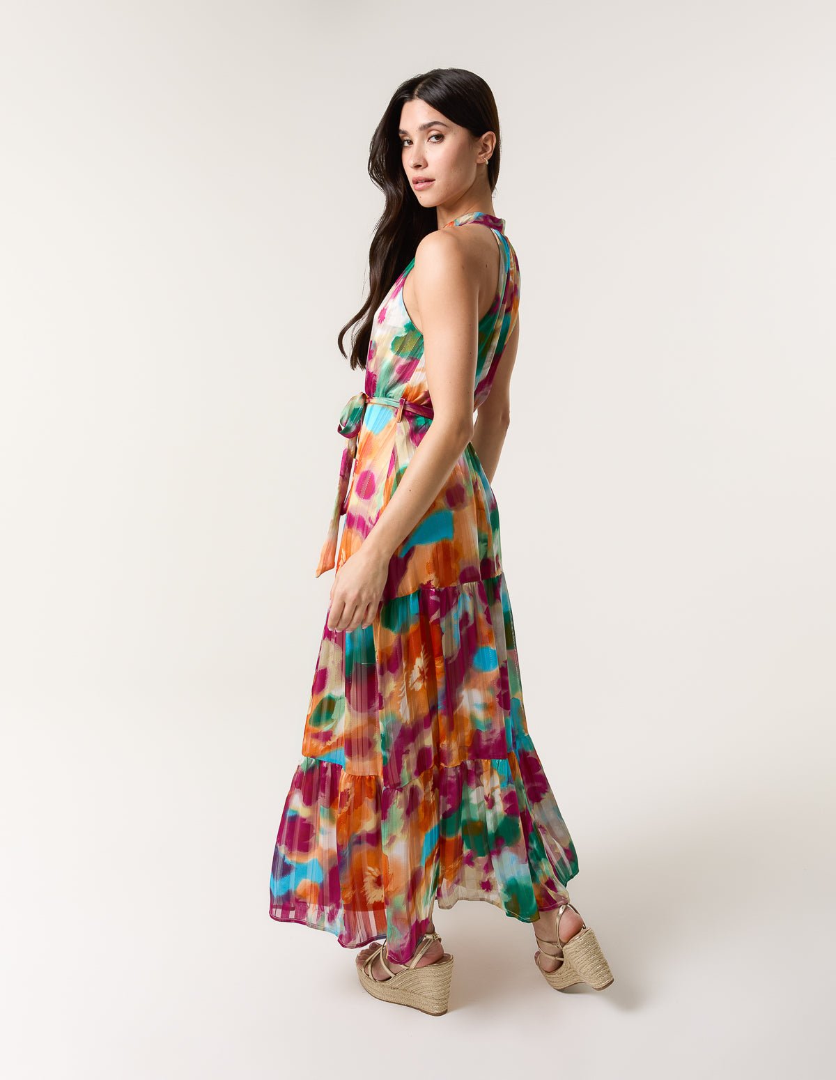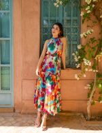 Watercolour Halter Neck Maxi Dress