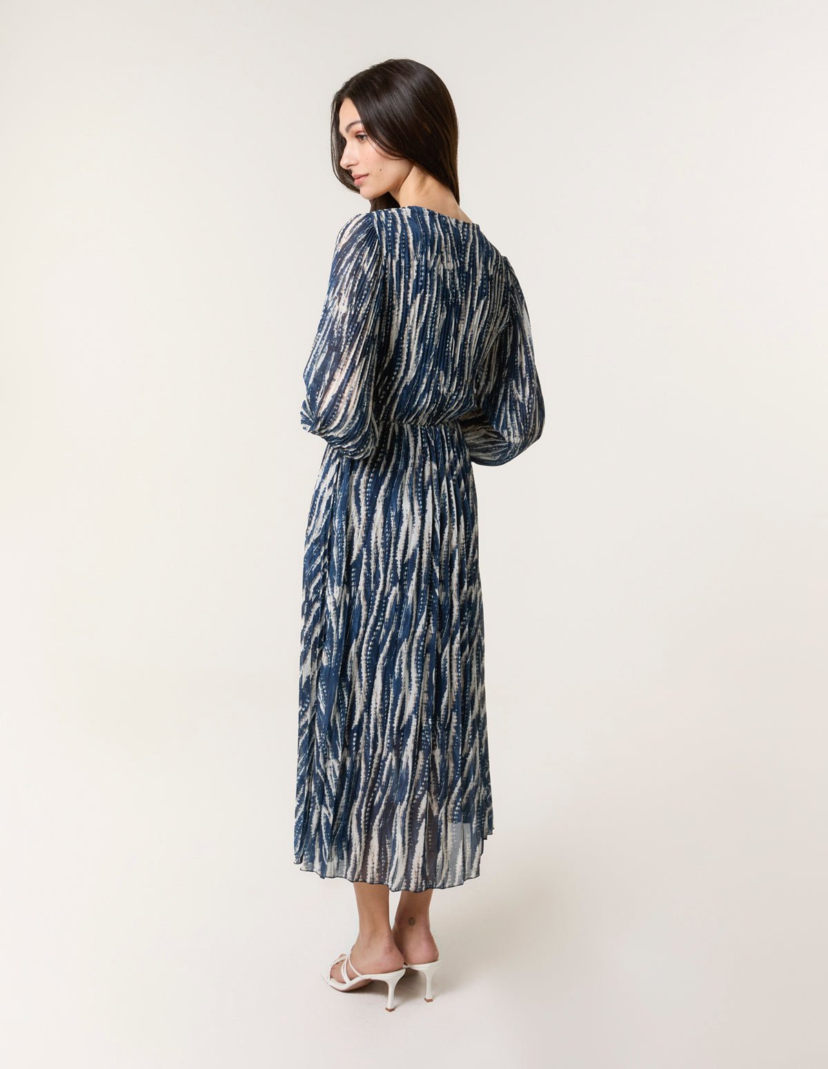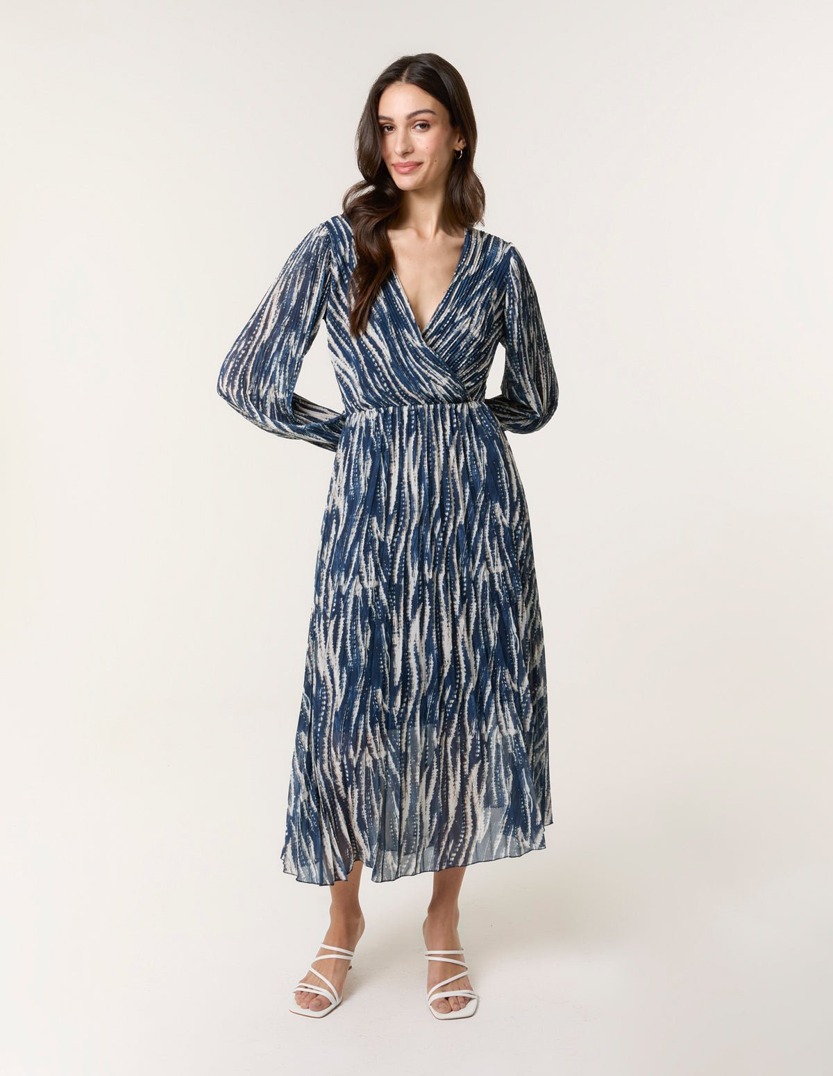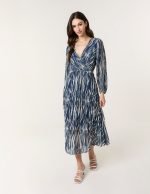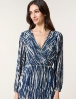 Wave Print Pleated Wrap Front Dress