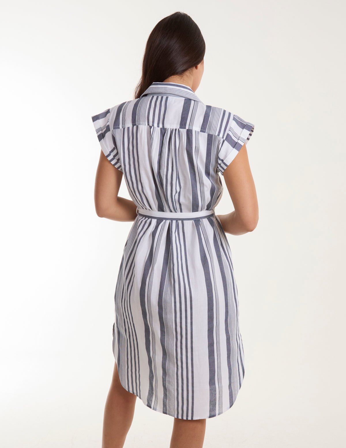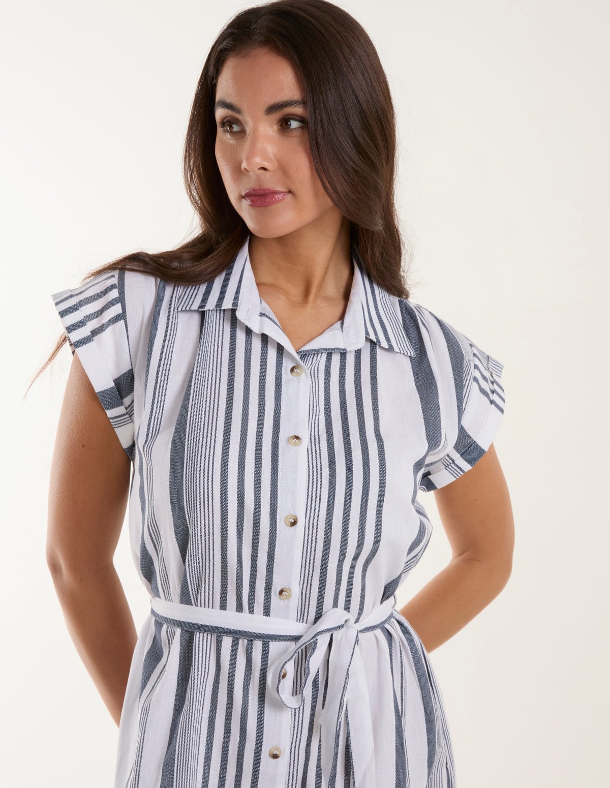 Classic in its colourway and shape, this pinstripe shirt dress is a breeze to style. Just team with white sandals, and be good to go!
