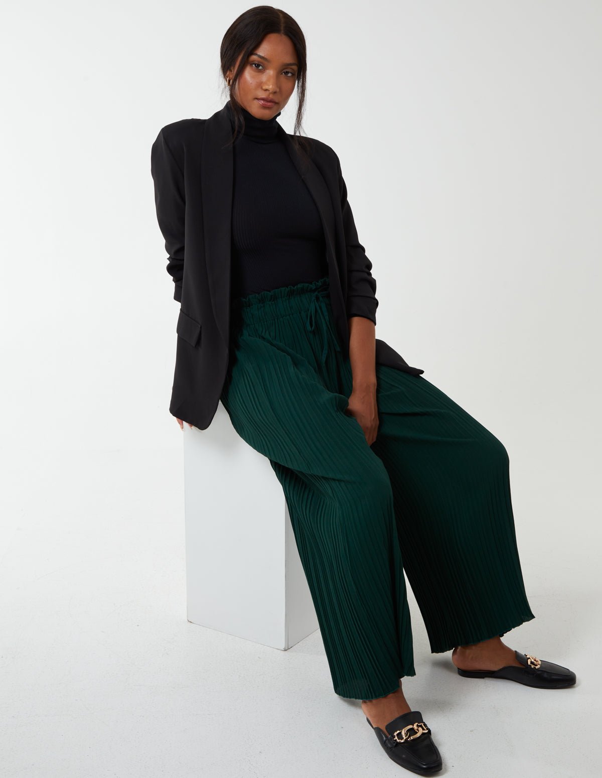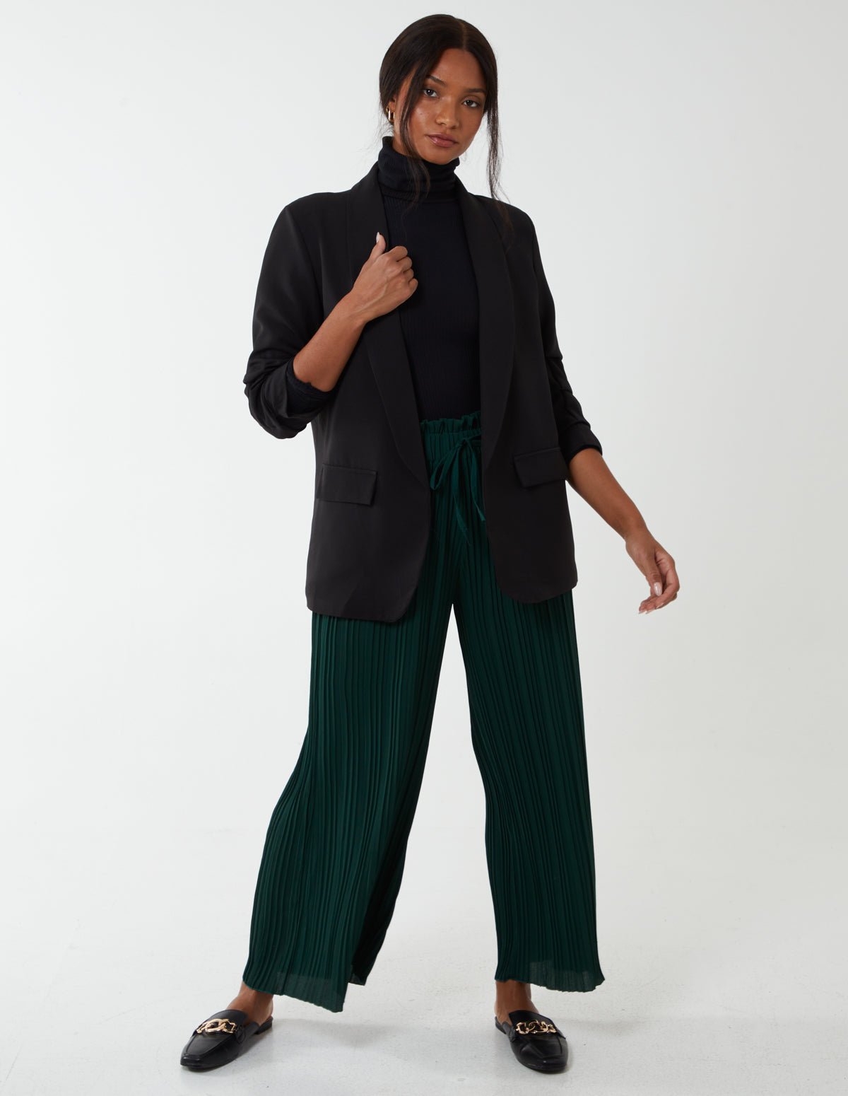 Wide Leg Pleated Trousers